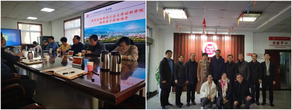 2021年12月6日下午西安工业大学材料与化工学院党委书记呼晓青、院长惠增哲、副书记陈卫星、副院长杨忠、金洗郎一行七人来我院调研交流。全体院领导及各科室负责人参加了此次调研会。