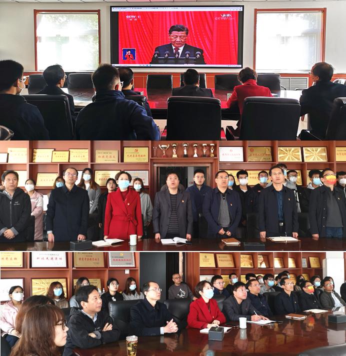 各党支部组织师生通过电视、网络等媒体以集中收看、腾讯会议等不同形式收听收看党的二十大开幕会直播。