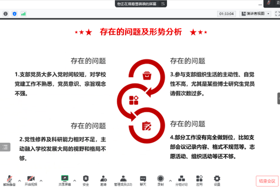 王强院长对述职会议进行了肯定,并对学院一年来的各项工作取得显著成效予以充分肯定,同时也指出各支部工作有很多的特色及亮点,仍需要在推广和宣传报道上进一步下功夫。