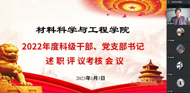 2023年1月3日,beat365通过腾讯会议召开了2022年度党支部书记、科级干部述职评议会。学院党委委员、领导干部、各党支部书记和科级干部参加了会议,会议由院党委书记廖海洪主持。