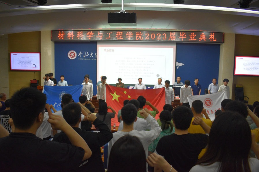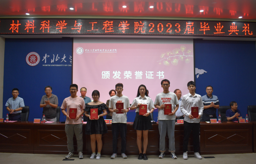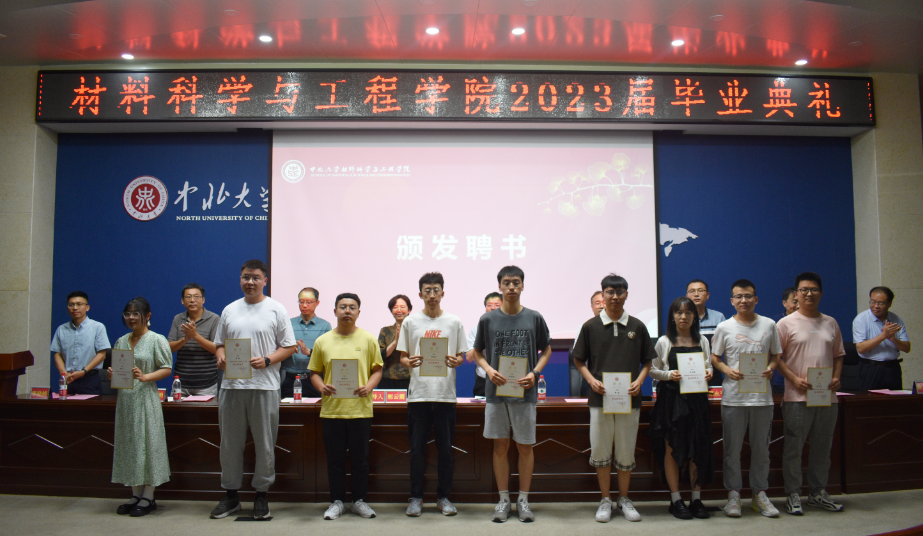 此次毕业典礼在全体师生共同奏唱国歌中拉开序幕,激昂的国歌过后,毕业典礼正式开始。首先由王强院长宣读《关于表彰2023届优秀毕业生及综合素质奖学金获得者的决定》,随后优秀毕业生代表们一一与学院领导握手合照并领取属于自己的荣誉证书。紧接着学院教学副院长李迎春宣读《关于聘任2023届校友联络员的决定》。接下来,研究生毕业生代表王飞飞同学叙述自己在研究生三年的学习期间的收获,对学院的培养表达了深厚的感激之情;本科生毕业生代表鲁泽同学说出了她经历了大一的纯真年代,走过大二的轻舞飞扬,告别大三的紧张忙碌,迎来大四的依依惜别的种种感慨,表达了对母校深深的感激之情。他们的发言引来阵阵欢呼与掌声。接着,在校生代表张翔同学也向毕业的学长学姐们表示祝贺,并表达了对他们真挚的感谢与深深的祝福。教师代表李晓峰的致辞充满深情,博得了一片片掌声。最后,院党委书记廖海洪致辞,不仅表达了对毕业生们的衷心祝福和不舍之情,同时也给他们提出了最后的几点建议和殷切希望。希望他们在以后的工作道路上继续学习、踏实做事、老实做人,牢记“致知于行”校训和“真材实料,精益求精”院训,争做中北大学beat365最靓丽的名片。