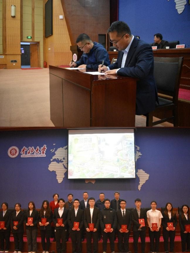 廖海洪书记代表学校致欢迎辞。崔贵府副总经理与刘国东部长签署捐赠协议。校企领导为获奖学生颁发荣誉证书。获奖学生代表张世成表示,荣获本届金发奖学金是责任是进取是回报,感受到金发对中北学子的支持,感谢中北大学提供平台,感谢老师的谆谆教诲,今后会更加努力。