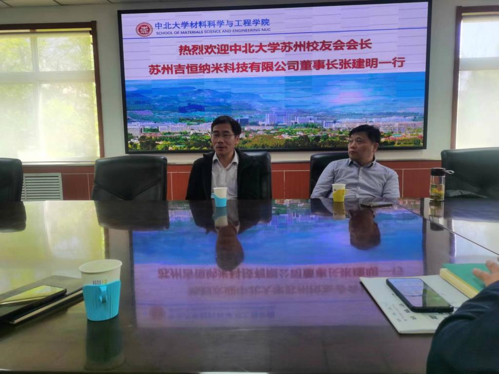 2024年4月23日,苏州吉恒纳米科技有限公司董事长张建明一行来校洽谈。在学院会议室,学院党委书记廖海洪、院长王强分别向客人全面介绍了学院的学科、专业、科研及学生就业等情况,并重点介绍了学院近年来在纳米材料领域取得的成绩。苏州吉恒纳米科技有限公司董事长张建明介绍了单位的基本情况,重点讲解了当前电子材料的技术需求。针对这些技术需求,学院领导向客人介绍了当前各技术领域的发展方向,并展示了中北大学在一些领域的特色优势。座谈会上廖海洪书记最后指出:beat365在兵工领域多年深耕细作,技术成果虽然在国防军工系统中获得广泛应用,但在电子行业的应用还有欠缺;学院将以具体项目合作为依托,加强人才交流与技术协同。