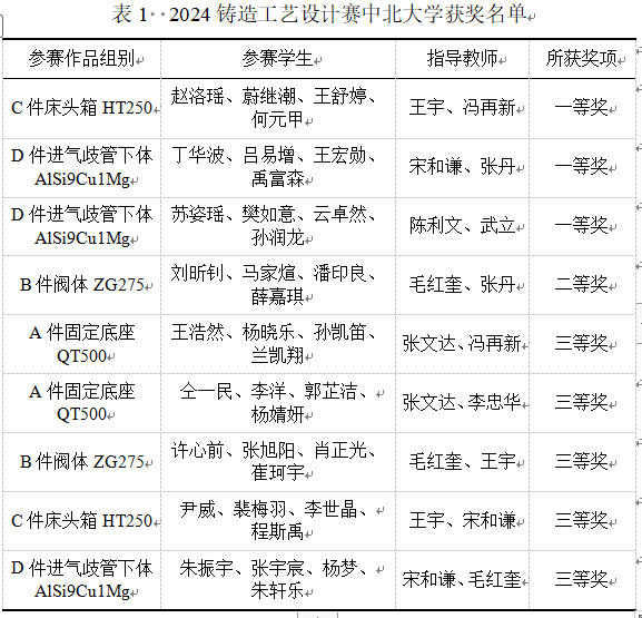 最终,共有9支队伍通过校内预赛进入区域赛、全国总决赛。在决赛期间,参赛团队沉着冷静、发挥稳定,在答辩环节详细阐述团队作品的设计思路、主要成果和创新点,认真回答评委提问。在随后的铸造知识竞赛中,将所学理论知识融会贯通,展现了中北大学“致知于行”的风采。