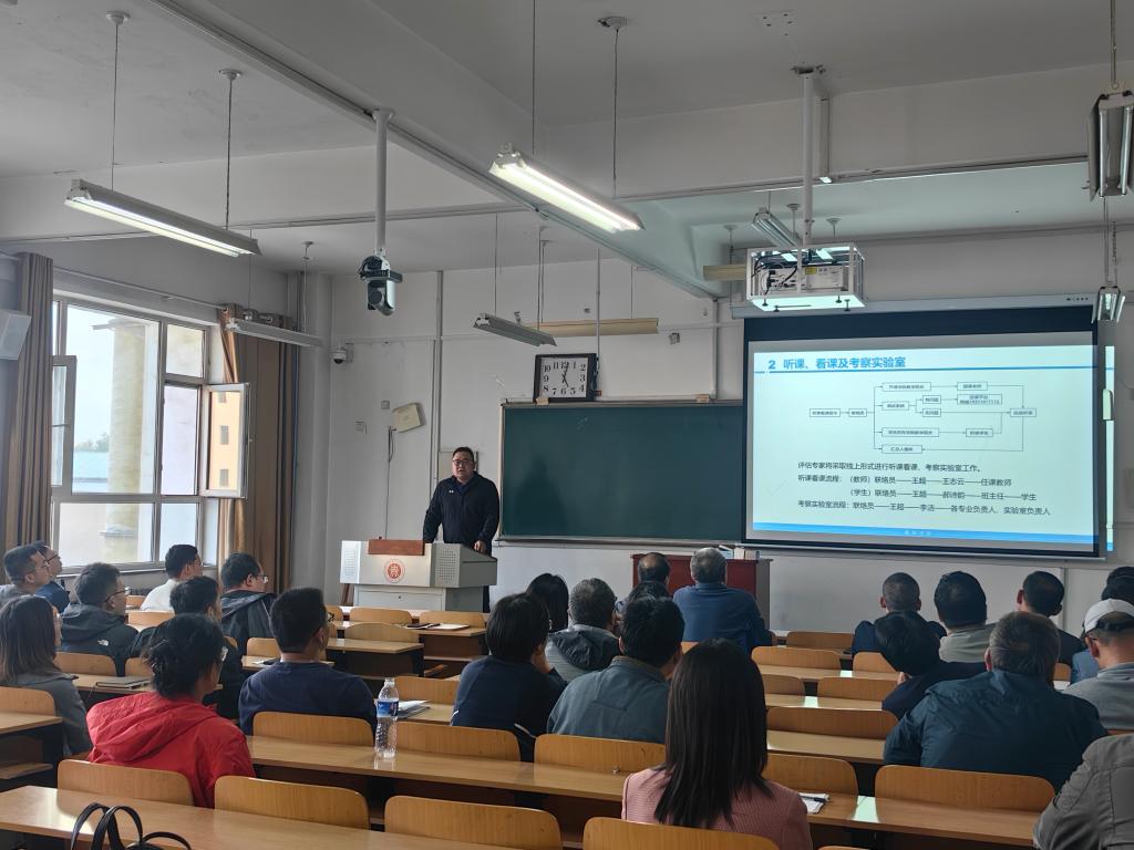教学院长王超首先对本次本科教育教学审核评估的总体情况进行了介绍,接着对听课看课、资料调阅、参观实验室、专题调研及访谈座谈等评估内容及具体流程做了详细说明,每项任务都落实到人,责任到人。强调各位教师要加强大局意识,严格按照评估要求,准备好相关材料,确保材料的有效度和完整度,以主人翁的姿态积极做好各项准备工作。