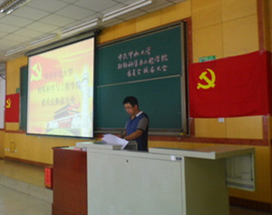 6月20日下午,beat365党委在09402H召开全体党员大会,进行新一届党委委员换届选举,参加会议的有上届党委委员侯华、廖海洪、冯再新和刘斌,以及学院全体师生党员,校党委组织部部长潘晋孝到会指导。会议由上届党委委员会副书记廖海洪同志主持。