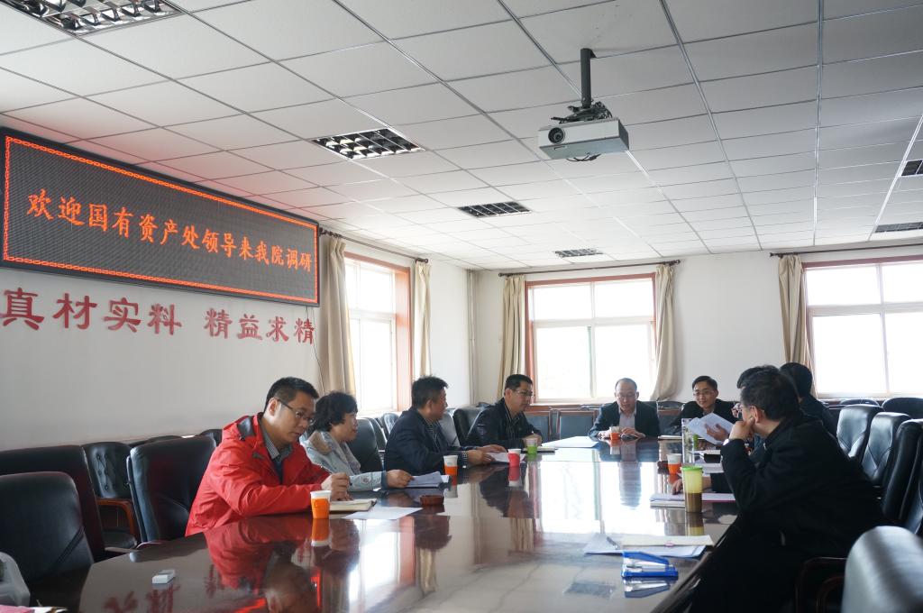 2015年3月30日,国有资产处药宏亮处长、乔传萍一行四人来我院调研,院领导、各学科部主任参加了座谈会。
