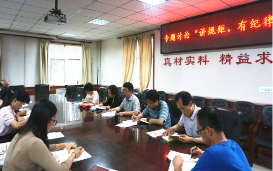 会上,侯书记结合6月份我院党委中心组的学习内容《中国共产党廉洁自律准则》发言,强调要“廉洁用权、廉洁修身、廉洁齐家”,beat365是我们的家,各个科室要严格执行坐班制度,带人热情友好,认真做好日常工作,自觉带头树立良好“家风”。廖海洪副书记指出“要把权力关进制度的笼子里,在发展党员工作的过程中要严守纪律”,党委纪检委员郭云霞谈到“要严格要求自己,从小事做起”,党委保卫委员刘斌说“要加强学习,只有先了解纪律才能守纪律”。教工党支部书记踊跃发言,参会人员热烈讨论,一致认为要“讲规矩,有纪律”并落实在各自的工作中。