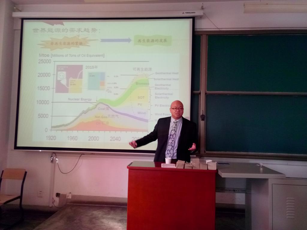 会上,李教授从自己的求学经历谈起,和大家分享了世界各地学术界、工业界在能源材料方面的发展现状以及自己的一些人生收获。李教授从环境的可持续发展角度阐述了可再生能源的发展前景,并鼓励大家放眼世界,用大脑去改变世界。随后,重点和大家交流了燃料电池的工作原理,种类,应用前景。李教授深入浅出的讲学风格非常吸引大家,并引起老师和同学们的激烈讨论,大家一致认为,此次讲座浅显易懂,会给大家留下更大的反思空间。