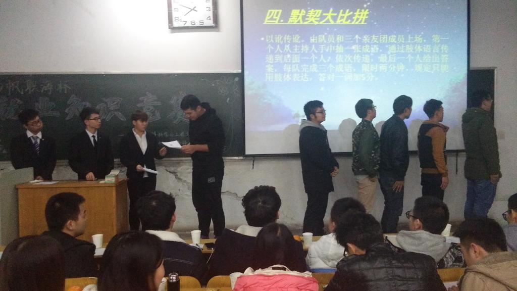 本次比赛无名小分队(15030541班)以74.5分的绝对优势取得第一名,VIVA LA VIDA(16030141班)取得第二名,什么都对队(14030242班)以取得第三名,巨人队(16030542班)和不老男孩队(16030342班)获得优秀奖。