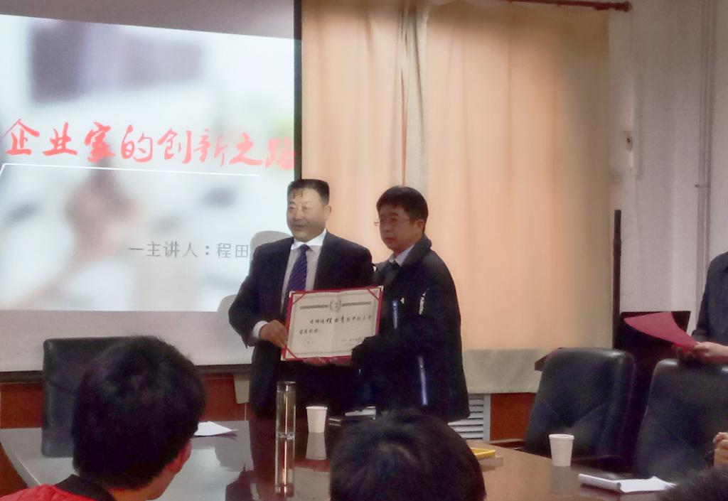 讲座伊始,侯书记为程董事长颁发了客座教授聘书。随后程董首先讲述了他曾经的那段非常人所能想象的创业创新之路。仔细体会程董的创业经历,可以体会到他那敢为人先、诚信经营的优良品质。从白手起家挣到人生的第一桶金,再到危机时刻的坚持不懈、脚踏实地,可以体会到程董创业路上的睿智与敏锐的观察力。
