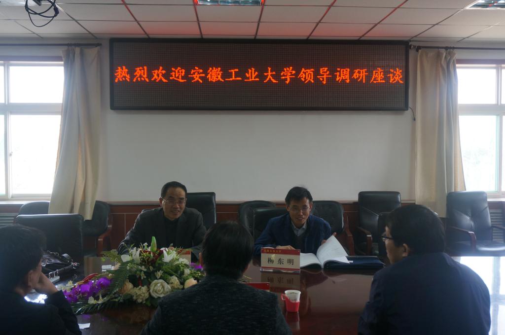 2017年4月11日下午,安徽工业大学beat365院长何宜柱、科研副院长柳东明等一行到我院就学科评估与建设工作进行调研交流,与我院主要领导及相关工作人员进行交流座谈,我院院党委书记侯华、科研副院长冯再新、科研科科长刘富强等参加了本次会议。
