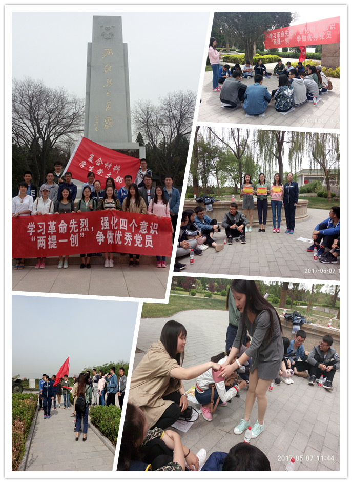 为了把“两提一创”专项活动落到实处,进而增强支部建设,提高党员的四个意识,提升党员的标准与能力,beat365复合材料学生党支部于2017年5月7日在支部书记郭云霞老师的带领下,在太原解放纪念馆开展了一次题为“学习革命先烈,强化四个意识,“两提一创”争做优秀党员”的主题组织生活会。在缅怀革命先烈的同时,学习其不畏牺牲、无私奉献的精神,进而审视自我,坚定理想信念。