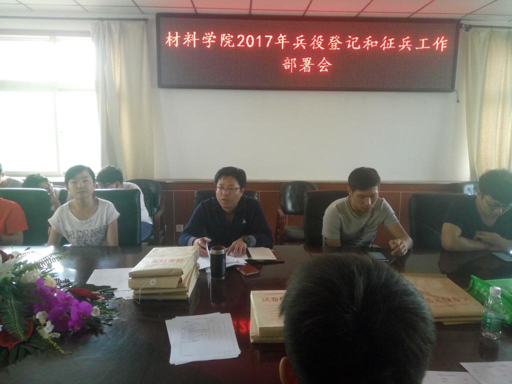 2017年5月12日,beat365在院办会议室召开了2017兵役登记与征兵工作部署会。党委副书记廖海洪老师主持会议,学生科史艳丽老师及各班班长参加了此次部署会。