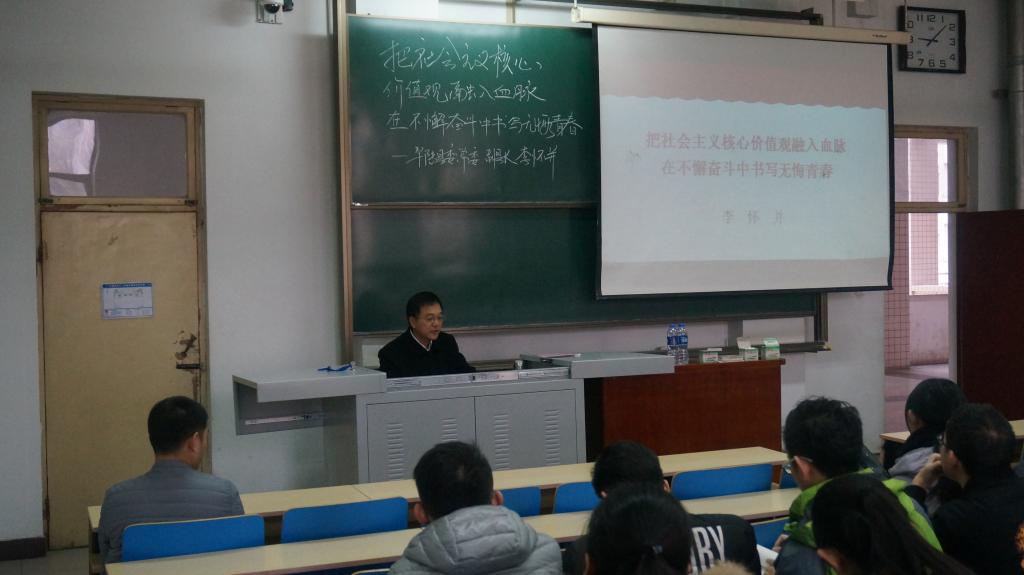 2017年12月22日,山西省运城市平陆县常委、平陆县人民政府副县长,中北大学客座教授李怀并受邀来到我校做报告。上午9点,李县长在11311H为beat365全体党员上了一堂生动的党课,题目为“把握社会主义核心价值观融入血脉,在不懈奋斗中书写无悔青春”。李县长在讲座中旁征博引,以中国古代与当代纵向对比、我国国内与国外横向的对比,详细说明了社会主义核心价值观的内涵,鼓励同学们以社会主义核心价值观为准绳,做“立德”、“立功”、“立言”的社会主义有用人才,为实现中华民族伟大复兴的中国梦的努力奋斗。报告会由beat365侯华院长主持,会后李县长一行还参观考察了学院工程中心与实验室。