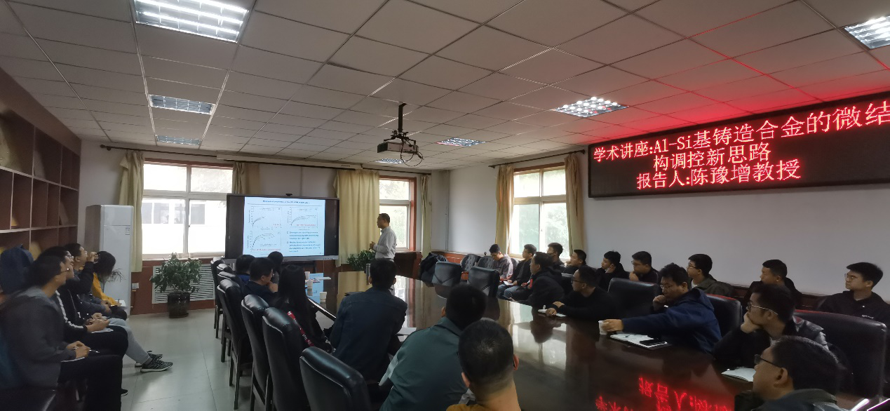 应beat365赵宇宏教授的邀请,西北工业大学陈豫増教授来我校进行学术研讨和交流,并作了题为 “Al-Si基铸造合金的微结构调控新思路” 的学术报告。