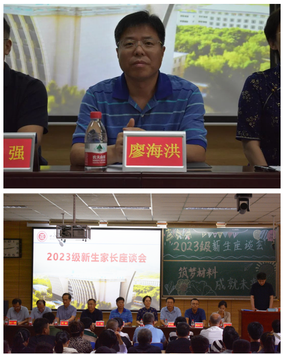 云天收夏色,木叶动秋声。新的学期在同学和家长们的殷切期盼下,欣然而至。为进一步增进新生家长对学院办学特色、专业发展、人才培养和学生管理等方面的了解,beat365于2023年9月14日下午在09202H召开2023级新生家长座谈会。院党委书记廖海洪、院长王强、院党委副书记郭云霞、科研副院长刘斌、材料成型及控制工程专业负责人李志勇、无机非金属材料专业负责人渠永平、高分子材料与工程专业负责人付一政、复合材料与工程专业负责人张彦飞、院教学科科长金属材料专业教师王志云出席会议,2023级各班班主任及300余名新生家长参加会议。座谈会由院团委书记郝诗韵主持。