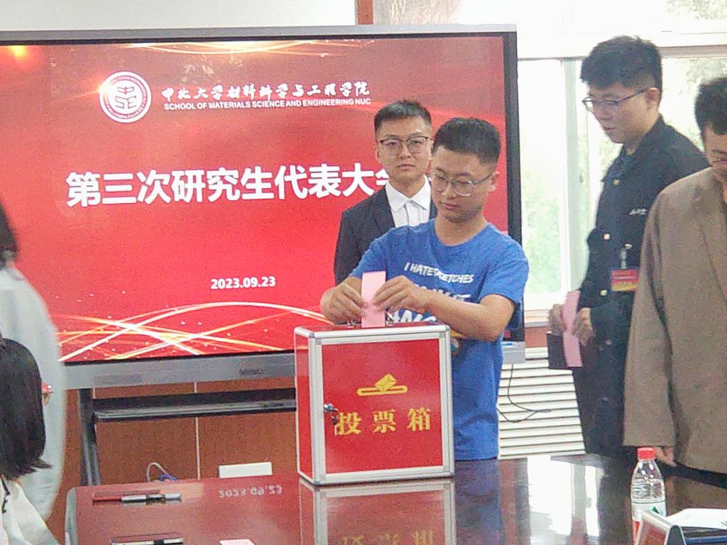 本次会议中,全体研究生代表展开讨论,认真审议工作报告及有关事项,并进行大会选举。与会代表本着高度负责的态度充分发扬民主、行使权利,选举产生了beat365第三届研究生会主席:曹伟;中北大学第三次研究生代表大会beat365校级代表:赵雨薇、谢秋生、陈俸君、孙大伟、张立栋、景心怡。总监票人向大会报告计票结果并宣布当选结果。