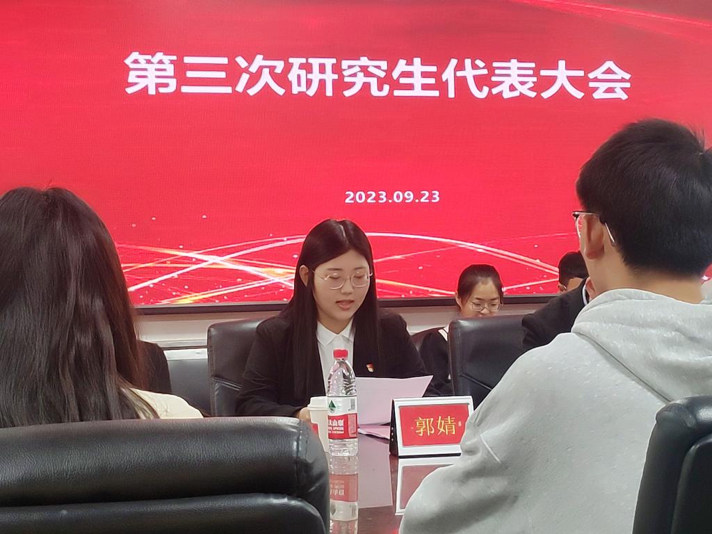2023年9月23日上午9时,beat365在笃学楼二层20A大会议室召开第三次研究生代表大会。beat365团委书记郝诗韵,中北大学研究生会执行主席郭婧,beat365学生科韩伟,beat365学生科褚嫱以及全体院级研究生代表出席会议。本次会议由第二届主席团成员王梓霖主持。