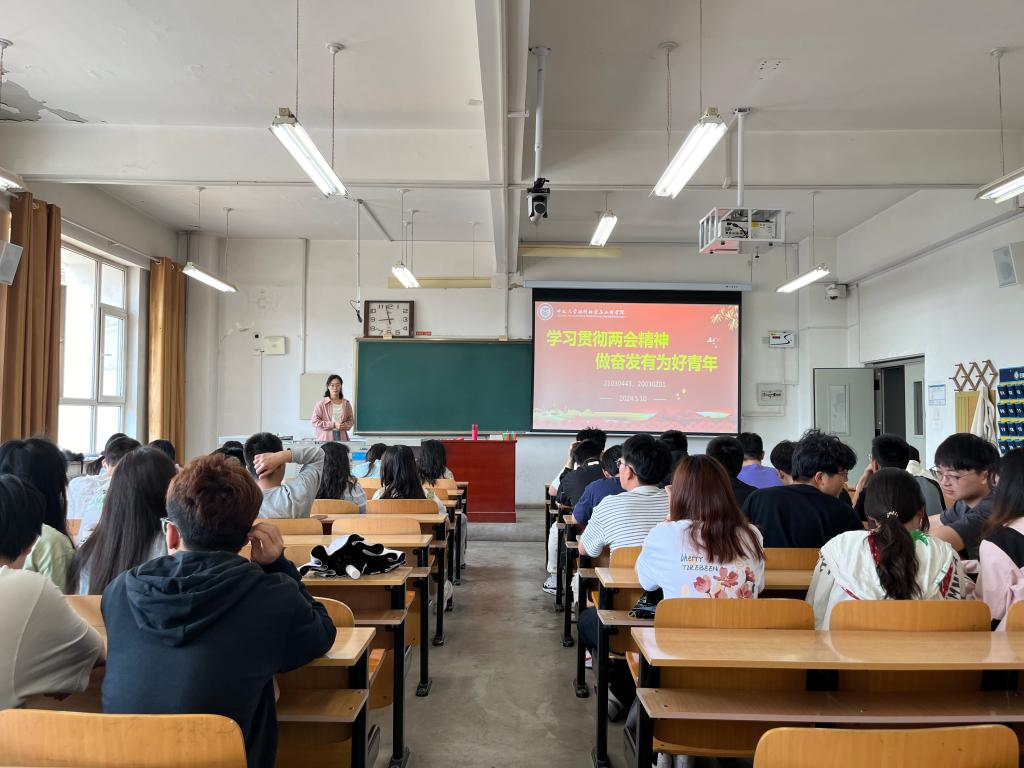 为深入学习贯彻2024年全国两会精神,明确青年学生的责任和使命担当,增强对中华民族伟大复兴的信心,不断提升自身的政治素质,2024年5月10日,21030443和20030Z01班在14201H召开“学习贯彻两会精神,做奋发有为好青年”主题班会,班会由人生导师beat365教学科科长王志云老师主讲,21030443班班主任李静老师主持。