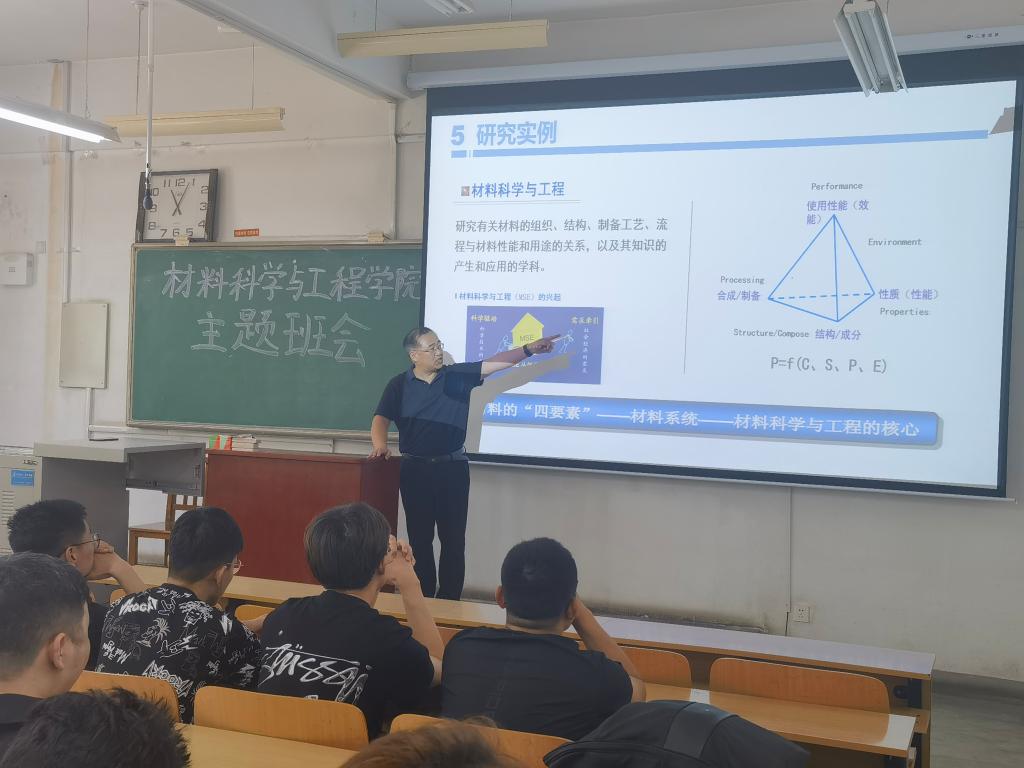 王院长首先与大家共同学习了习近平总书记关于制造业、新材料的重要讲话,“任何时候中国都不能缺少制造业” “新材料产业是战略性、基础性产业,也是高技术竞争的关键领域,我们要奋起直追、迎头赶上”。给同学们介绍了制造业、新材料的发展及趋势,强调了制造业、新材料的重要地位和作用,鼓励同学们投身于制造强国和材料强国建设。随后结合自身在铝镁合金材料及成形制造方面的科研成果实例,讲解了材料科学与工程学科专业的内涵与要点,为同学们在专业领域的学习和工作提供了指导。