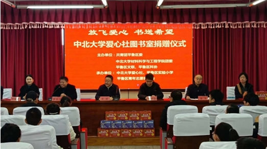 上午,团队首先来到朔州市平鲁区实验小学,参加“放飞爱心·书送希望”中北大学爱心社图书室捐赠仪式。捐赠仪式由朔州市平鲁区团委书记卢丽花主持,朔州市平鲁区常委、区委副书记李斌,科协主席高军,作协主席侯青山,区实验小学校长赵春叶,beat365党委书记廖海洪,团委书记郝诗韵,教授王延忠、无机非金属工程专业负责人渠永平、教师王金及中北大学爱心社王念等8名学生代表出席捐赠仪式,平鲁区实验小学150余名师生代表共同见证了图书捐赠的美好时刻。
