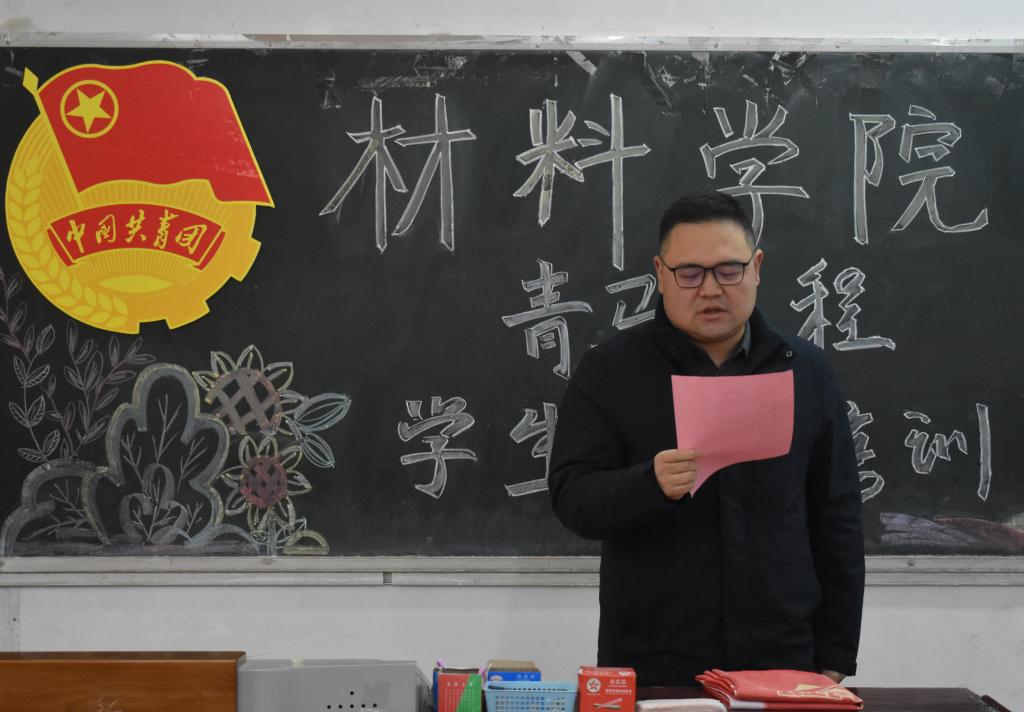 在雄浑的团歌声中,第十九期青马工程培训班开班仪式拉开序幕。首先院团委书记郝诗韵老师宣读培训考核制度、介绍考核标准,希望大家严格遵守课堂纪律,对于学习内容要积极思考、理解内涵、领会精神、学以致用。