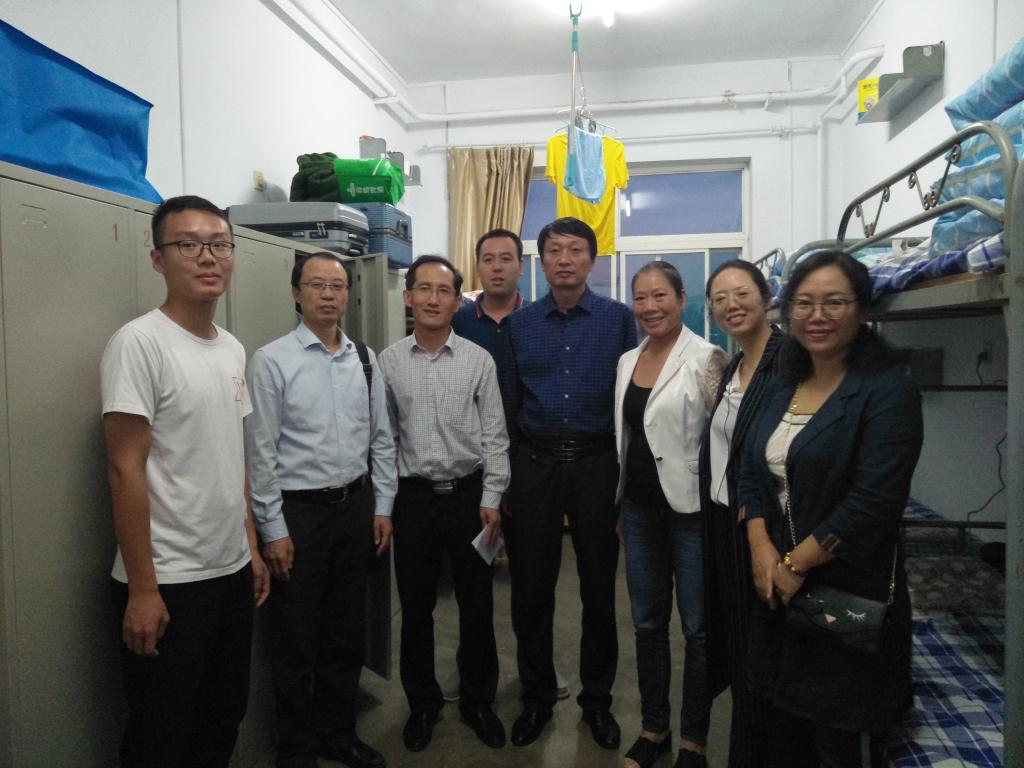 朗朗金秋,丹桂飘香,9月8日晚,18级迎新工作顺利完成。院党委书记薛亚奎、院党委副书记郭云霞、教学副院长李迎春、科研副院长刘斌、院各学科部副主任、辅导员以及全体新生班主任一同来到新生宿舍,看望18级本科生并向新生表示慰问和关怀。