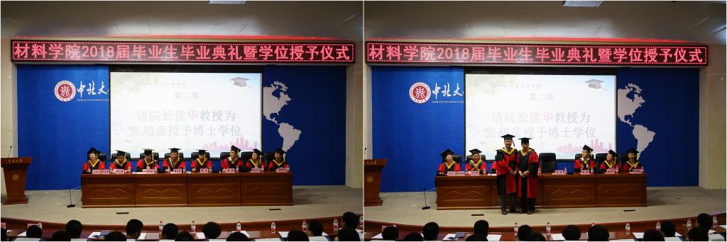 毕业典礼在雄壮的国歌声中拉开帷幕。院党委书记薛亚奎教授宣读 《关于表彰2018届优秀毕业生及综合素质奖学金获得者的决定》,同时院领导亲自为优秀毕业生颁发荣誉证书。表彰过后,毕业研究生代表张鹏飞同学与本科毕业生代表吉志洁同学依次发言,表达了对母校多年来的培养表示衷心的感谢,并会牢记自己是一名材料人;牢记恩师们的教诲,牢记“真材实料,精益求精”的院训。随后在校生代表景心怡同学发言,言语中饱含对毕业生的不舍与祝福,并表示他们会向我院的优秀毕业生学习,不愧为中北学子,为beat365争光。