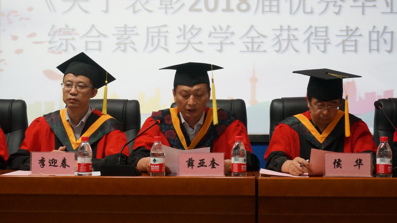 学位授予仪式正式开始,教学副院长李迎春教授宣读了《关于授予2018届毕业生学位的决定》,有4名博士生获得博士学位,76名研究生获得硕士学位,475名本科生获得学士学位。侯院长亲自为博士拨流苏、颁发学位证书;学士委员会成员分别为505名毕业研究生与毕业本科生拨流苏、颁发学位证书。身着学位服的毕业生们,在学院教授为他们发学位证、拨流苏的那一瞬间,他们的脸上流露出无限的留恋与感激。发在他们手上的不仅仅是一纸证书,还有沉甸甸的知识与收获。