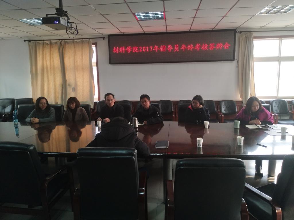 2017年12月29日上午9:00,在beat365二层会议室,beat365召开2017年辅导员年终工作述职。院领导侯华、李迎春,郭云霞、付一政、梁敏洁、刘富强、王燕担任此次述职答辩的评委。会议由郭云霞副书记主持。