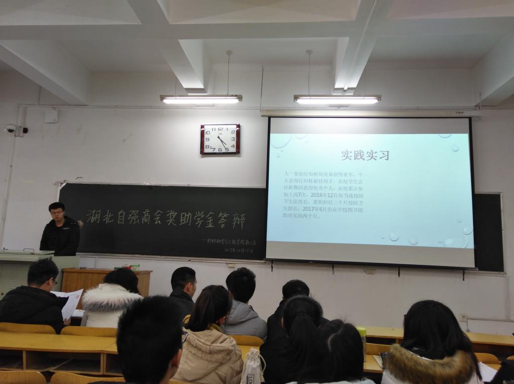 2017年12月25日,为了充分体现奖学金评选工作的公平公正公开原则,给学生们更多展示自我的机会,beat365于10201H教室举行了山西湖北商会奖学金评选答辩会。殷炳叶老师、张家滕、韩硕林和周文虎学长担任评委,勤工委的部分成员
