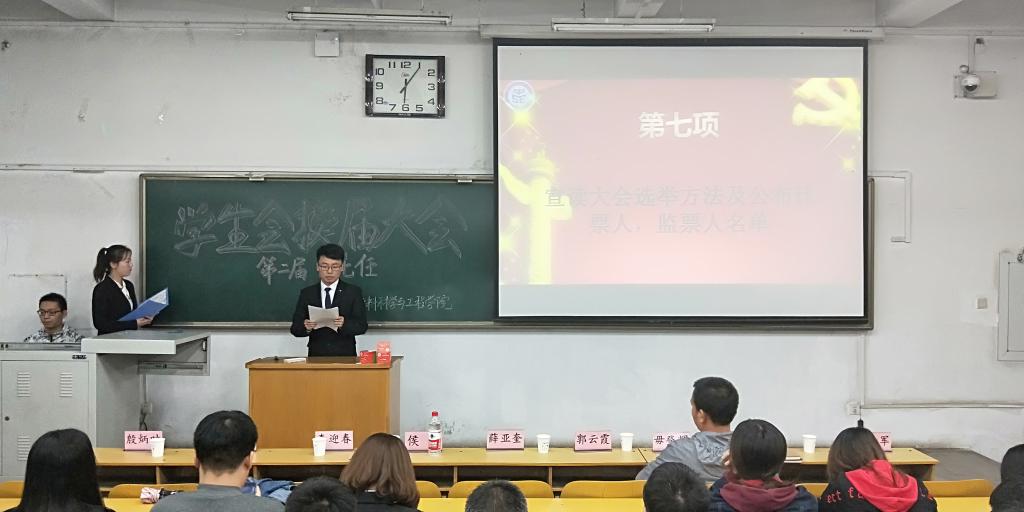 而后毋登辉老师宣读第二届第七任学生会干部候选人名单。团委副书记刘志伟宣读本次选举大会的选举办法并公布计票人、监票人名单。接下来是述职环节。各位候选学生会干部都做了述职演讲,表达了对所竞选职位的理解和各自的优势以及对未来的规划。会议最后,大会总监票长刘志伟宣读选举结果。毋登辉老师对本次大会做出了总结,他希望新一届干部能不忘初心,交出一份学院、同学们满意的答卷。