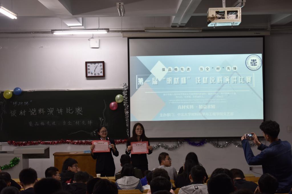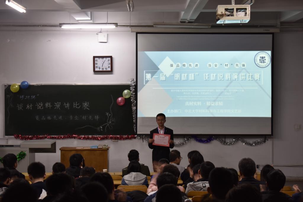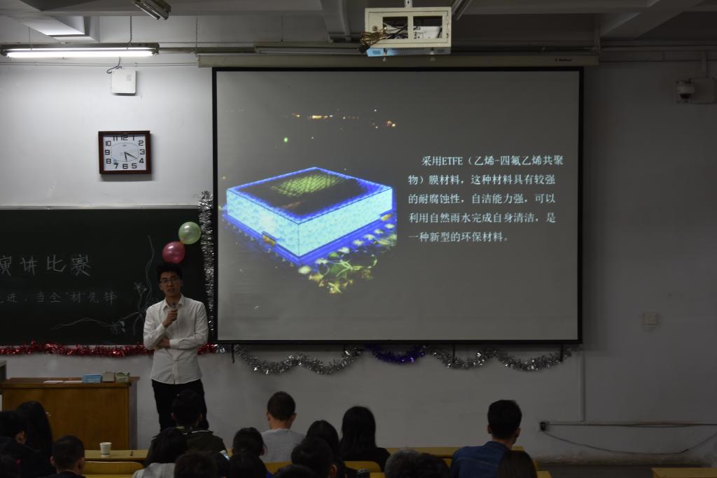 首先是主讲人详细的介绍了材料在各个领域的重要性,解释了今日演讲比赛的目的和意义。随后,比赛正式开始,各位选手的演讲里都包含了对专业的攻克方向、就业前景、发展方向和考研院校的独到的见解。让现场的同学们更加了解材料专业,为同学们解决了许多困惑已久的问题,同时使同学们更加明确了目标与方向。整场比赛,演讲形式丰富多彩,选手们别出心裁,他们富有感染力的精彩表现打动了评委和在场的观众,博得现场阵阵掌声,展现了当代大学生的风采。为了缓解比赛现场的紧张气氛,文艺部的魏佳贺为大家演唱了一首《追梦赤子心》,徐子涵同学用口琴演绎了一首《天空之城》。随着时间的流逝,比赛在不知不觉间接近了尾声。本次比赛的一等奖是崔其晖,二等奖是高鑫鑫、黄启楣,三等奖是武沛溶、姚思玮、李向阳。最后,由文艺部副主席王尚文做了比赛的总结,表示这次演讲比赛对同学们来说获益颇多,既锻炼了同学们的心理素质,又提高了表达能力,希望未来会越来越好。