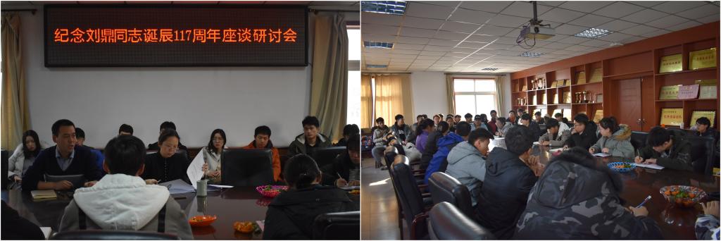 2019年1月7日下午4时,在院办会议室我院举办了纪念刘鼎同志诞辰117周年座谈研讨会,出席本次研讨会的有beat365党委副书记郭云霞老师,院团委书记毋登辉老师,各年级学生干部参加本次活动。