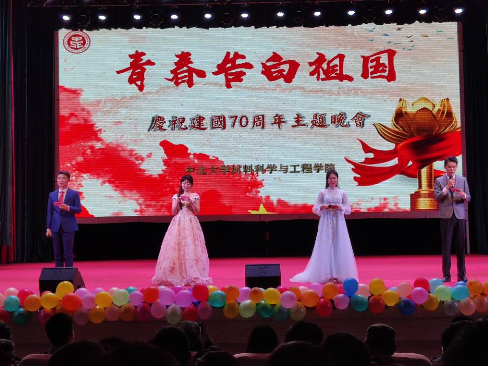 开学典礼后,“青春告白祖国”庆祝中华人民共和国成立70周年主题晚会在同学们的欢呼声中上演,通过歌曲、舞蹈、相声、小品、乐器独奏等多种形式表达了同学们的爱国情怀,共同为祖国歌唱,为祖国庆生。激昂的旋律、不悔的青春,点燃现场所有的师生。在饱含诗意、满怀豪情壮志的《我爱你中国》朗诵合唱中,晚会圆满落下帷幕。歌声铿锵,中北人满怀豪情发出呐喊,续写青春新篇章,争做新时代追梦人!