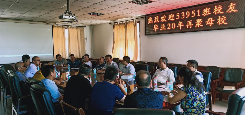2019年7月6日至7日,53951班校友毕业20年后再次相聚母校。现化学工程与技术学院党委书记廖海洪(53951班班主任)、beat365院长侯华、院党委书记薛亚奎、院党委副书记郭云霞、本专业老教授靳玉春与校友们共聚学院会议室,共叙师生情,进行了其乐融融的座谈会。