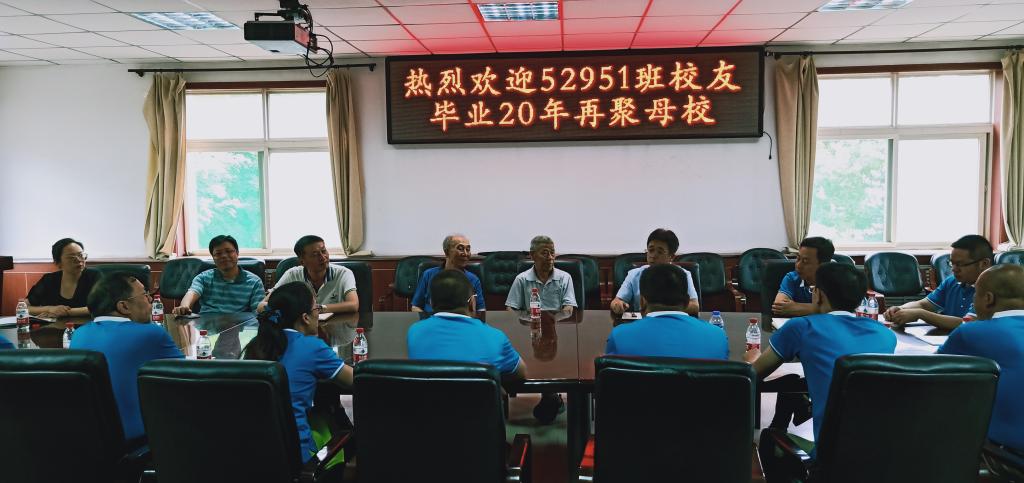 2019年8月3日至5日,52951班校友在毕业20年后再次相聚母校。本专业老教授周铁成老师、田永奎老师、班主任张星老师、现化学工程与技术学院党委书记廖海洪、beat365党委书记薛亚奎、院长侯华、院党委副书记郭云霞与校友们共聚学院会议室,忆往日师生情。