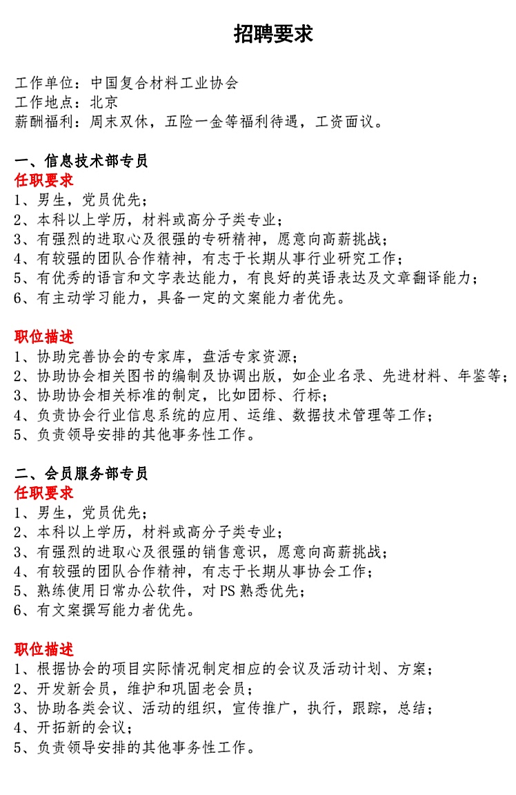 中国复合材料工业协会校园招聘