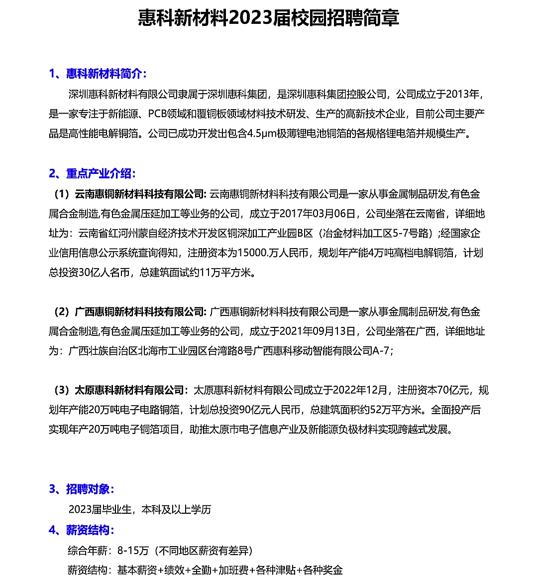 惠科新材料有限公司校园招聘