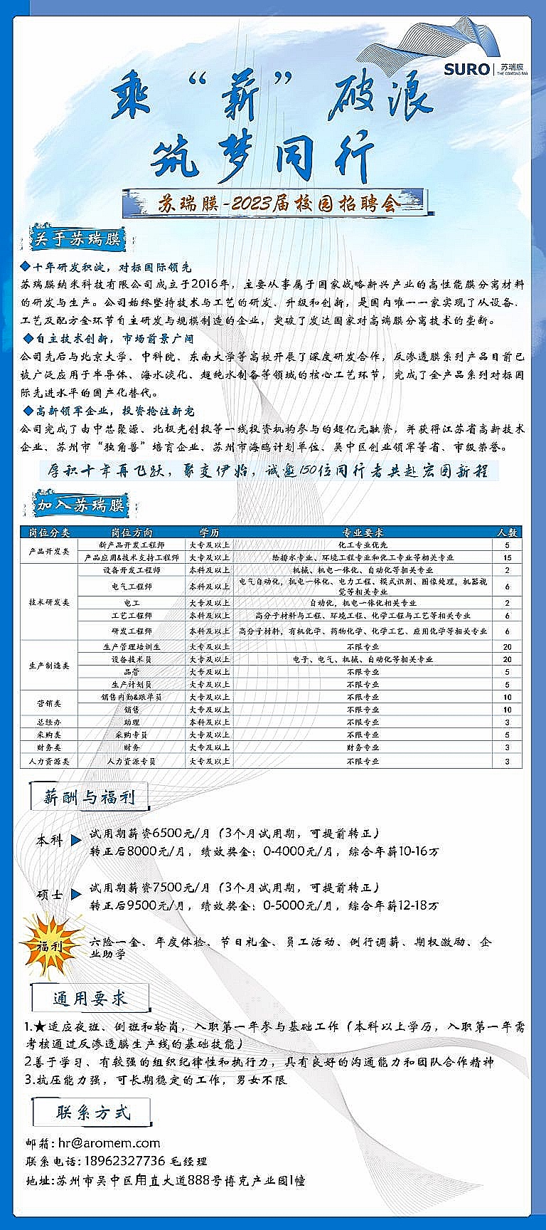 苏瑞膜纳米科技有限公司2023校园招聘