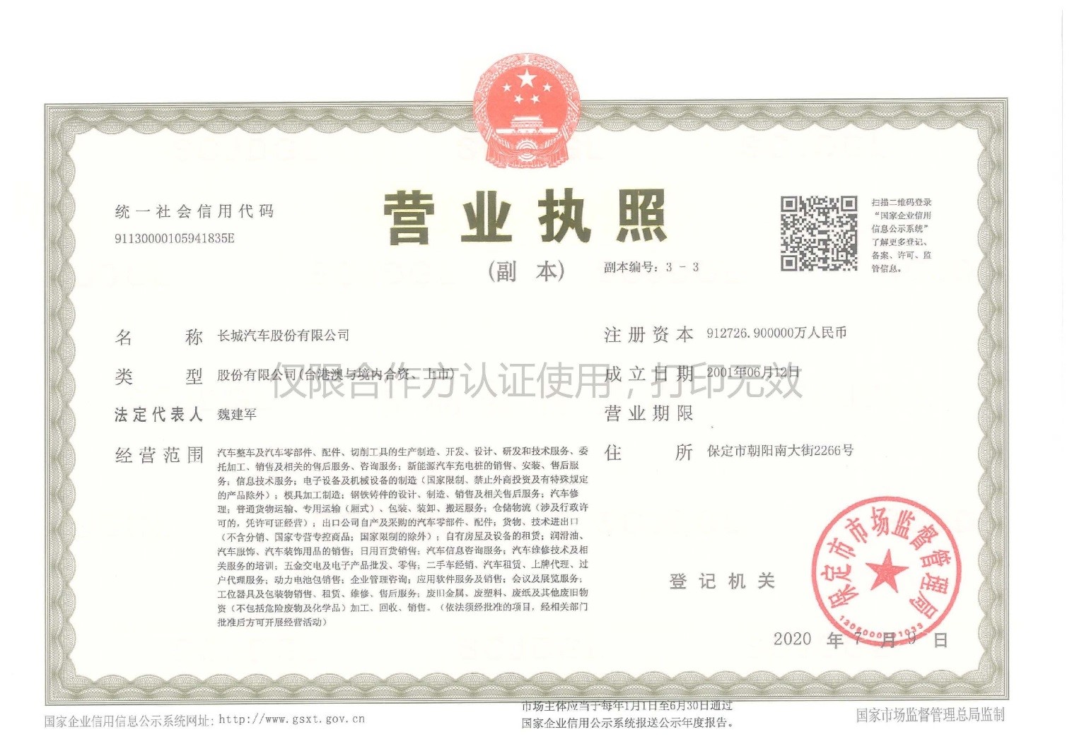 长城汽车股份有限公司(以下简称“长城汽车”)是在香港 H 股和国内 A 股上市的全球知名的 SUV、皮卡制造商。旗下拥有哈弗、WEY、欧拉、坦克、长城皮卡和沙龙六大整车品牌,具备发动机、变速器等核心零部件的自主配套能力,截止2020年底下属控股子公司100余家,总资产达1540亿元,员工 8万余人。