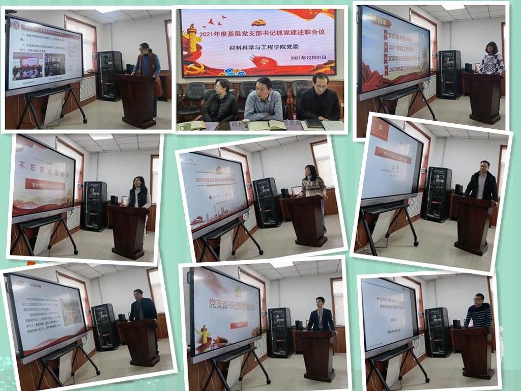 院党委书记薛亚奎首先传达了校党委书记沈兴全同志在学校基层党组织书记抓党建工作述职会议上的重要讲话精神,并就各党支部书记做好党建工作总结和述职评议提出了要求。随后学院机关党支部书记、精密成形中心党支部书记、材料学党支部书记、铸造与液态成型中心党支部书记、研究生材料学党支部书记、研究生材料加工第三党支部书记、复合材料与工程学生党支部书记和材料成型及控制工程学生党支部书记围绕学习贯彻习近平新时代中国特色社会主义思想及系列重要讲话精神、党的十九届六中全会精神、山西省第十二次党代会和中北大学第三次党代会精神、开展党史学习教育、履行党支部书记党建工作“第一责任人”职责情况、落实党建工作“五化”情况、开展思想政治情况、抓党建促发展工作情况、突出问题和整改措施等方面进行现场述职汇报。其他党支部书记进行书面述职汇报。汇报过程中党委委员对所联系党支部的述职进行了指导和点评。