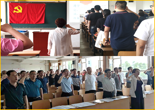 宣誓大会上,党员同志们面对党旗,高举右手,握紧拳头,庄严宣誓,庄严肃穆氛围中同志们目光如炬,激情澎湃,重温誓词中又一次接受了心灵的洗礼,再次坚定了对党忠诚、终生不渝的初心与信念。