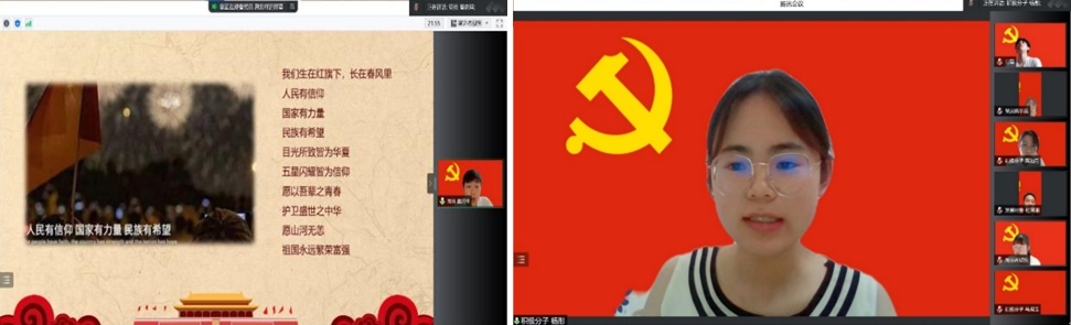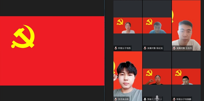 重温一次入党誓词。在领誓人郝诗韵同志带领下,支部全体党员在线上重温了入党誓词。“我志愿加入中国共产党,拥护党的纲领,遵守党的章程,履行党员义务,执行党的决定,严守党的纪律,保守党的秘密,对党忠诚,积极工作,为共产主义事业奋斗终身,随时准备为党和人民牺牲一切,永不叛党。”一句句铁骨铮铮的誓词,都饱含着全体党员对中国共产党的敬仰,对共产主义事业的向往,让每位党员都牢记神圣使命,永葆入党初心。