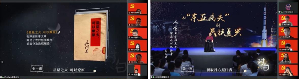 聆听一堂生动党课。在演讲活动结束后,支部成员在线上一起观看了由金一南将军讲授的党课——《从东亚病夫到民族复兴》。金一南将军分析清政府和民国政府失败原因,讲述伟大的中国共产党为什么能带领中国人民从站起来到富起来再到强起来的缘由,让大家更加坚定了理想信念。生动的党课鼓励支部成员在奋斗中实现个人价值,推动社会更好发展,坚持“全心全意为人民服务”的宗旨。