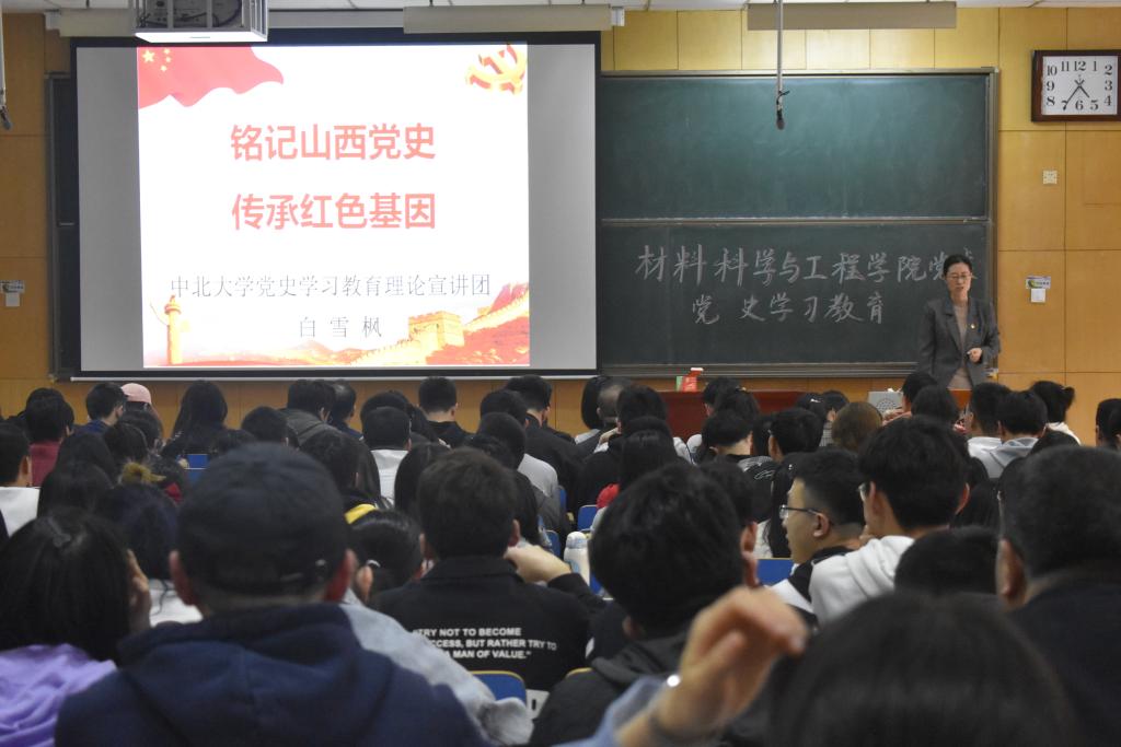 白雪枫老师掷地有声的宣讲引起大家的共鸣,更让广大党员感受到了党的百年奋斗历程和不变的初心使命。此次宣讲既阐明了党史学习教育的重大意义,又激励出了广大党员肩上的使命担当。通过此次宣讲学习,希望beat365广大党员群众能够铭记山西党史,践行和弘扬“太行精神”,传承山西党史和中北大学红色基因,与国家和民族同呼吸、共命运,做一个新时代爱党爱国爱社会的人。