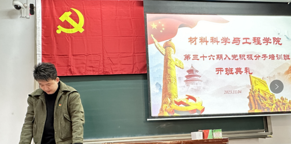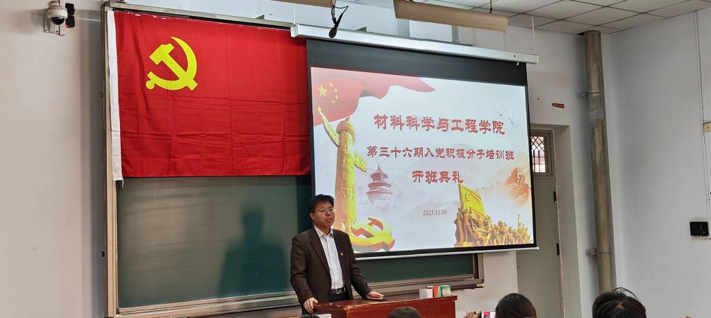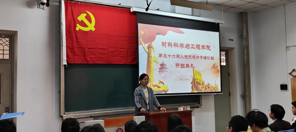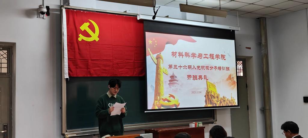 11月4日上午8时,举行了入党积极分子培训班开班典礼。院党委书记廖海洪,院团委书记郝诗韵,党委组织员李艳以及各学生党支部书记出席开班典礼。开班典礼在国际歌中拉开序幕。开班典礼上,郝诗韵同志宣读《beat365分党校学员守则》,李艳同志对此次院党课的各培训环节进行安排,复合材料与工程专业学生党支部胡禹辰同学代表全体入党积极分子发言。