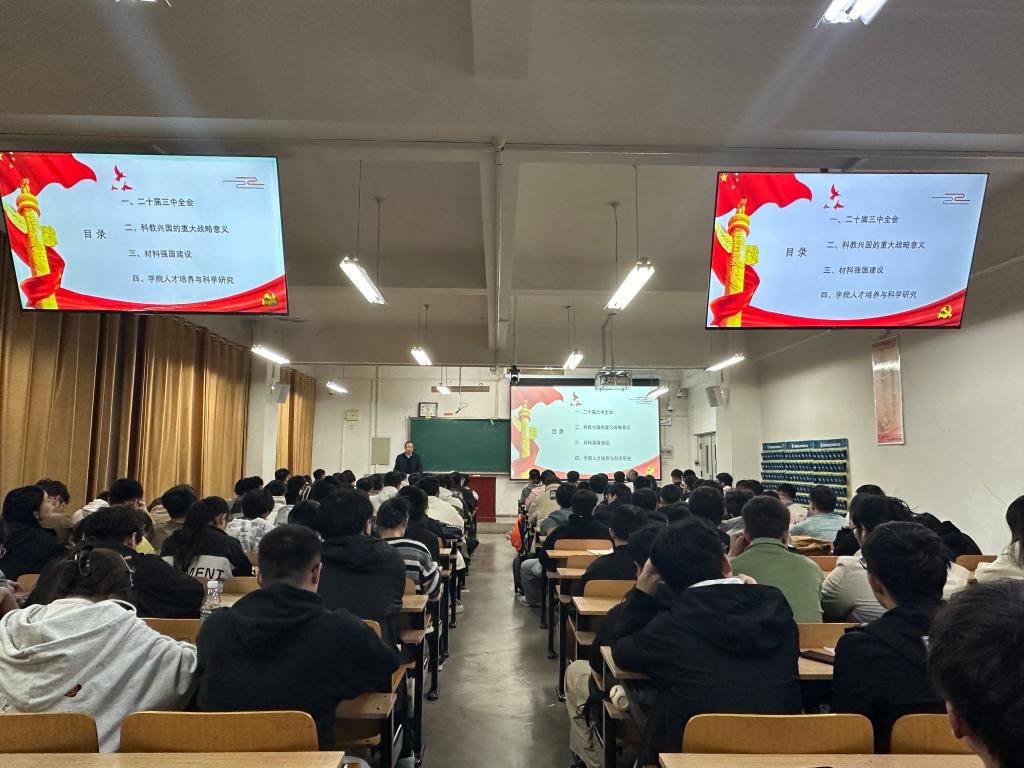 王强院长围绕党的二十届三中全会精神、科教兴国的战略意义、材料强国建设、beat365人才培养与科学研究这四个方面进行了全面宣讲和系统阐述。
