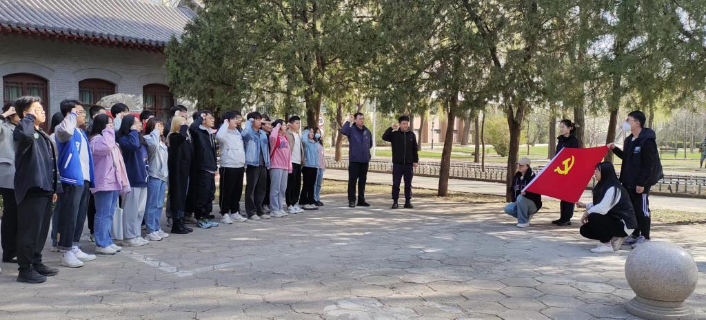 参观结束后,由高分子材料与工程学生党支部书记郝诗韵领誓,各位党员同志怀着深深的使命感与荣誉感再次重温了入党誓词。
